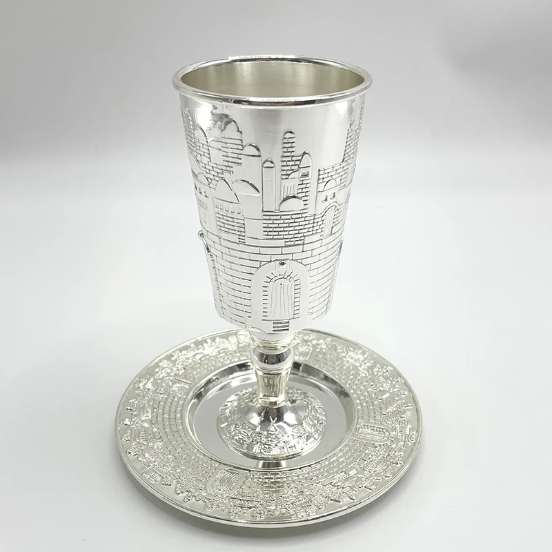 Eleve seus momentos de celebração com este sofisticado conjunto de copos Kiddush, desenvolvido especialmente para rituais judaicos tradicionais. Com acabamento banhado a prata e design clássico, este kit combina beleza, significado espiritual e durabilidade, sendo perfeito para uso em Shabat, festividades e ocasiões especiais.
